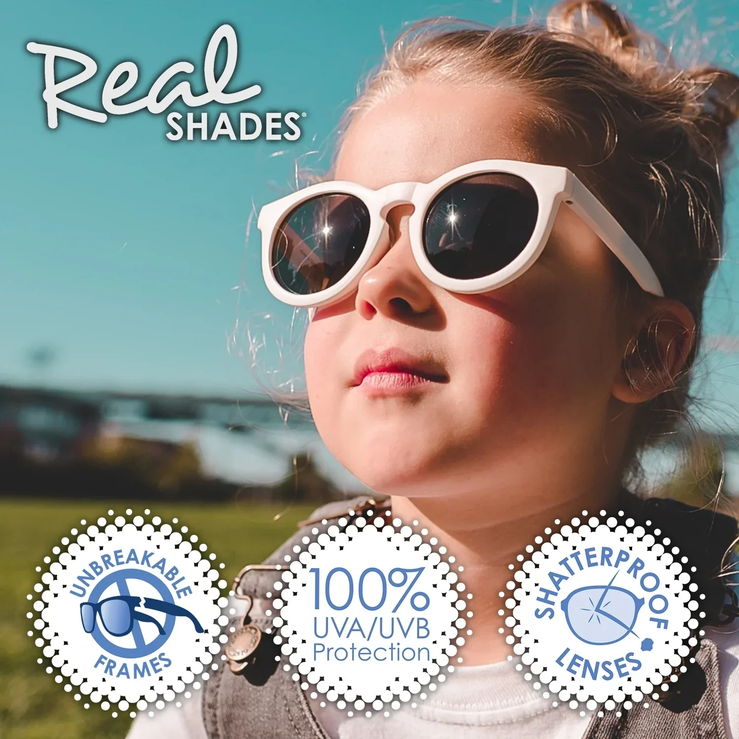 Coole zonnebril van Real Kids met gespiegelde glazen. Het montuur is super flexibel zodat jouw kind de zonnebril heen en weer kan bewegen zonder dat deze breekt. Het design van het montuur is zo gemaakt dat er minimale lichtinval is vanaf de zijkanten. De zonnebril is comfortabel, flexibel, onbreekbaar en biedt maximale bescherming 100% UVA/UVB (UV400). Zo ben je zeker dat de ogen van je kindje maximaal beschermd zijn tegen de felle zonnestralen. Beschikbaar in verschillende kleuren en maten. De brilletjes zijn CE-gecertificeerd en voldoen aan de Europese norm EN ISO 12312-1:2013/1:2015. Vrij van lood, BPA en ftalaten.