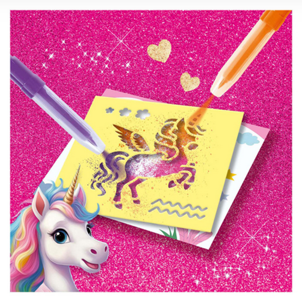 Ga creatief aan de slag met de Blow airbrush pens unicorn set. De 6 bedrukte kleurplaten wachten om prachtig versierd te worden. Met de drie unicorn sjablonen en blaas airbrush viltstiften in 5 heldere kleuren, kunnen de mooiste kunstwerken worden gemaakt. Gebruik de stiften als gewone viltstiften of plaats ze in de houders om de meest mooie spray effecten en kleurovergangen te maken. Het eenvoudige en gebruiksvriendelijke systeem is perfect voor kinderen die van knutselen houden.