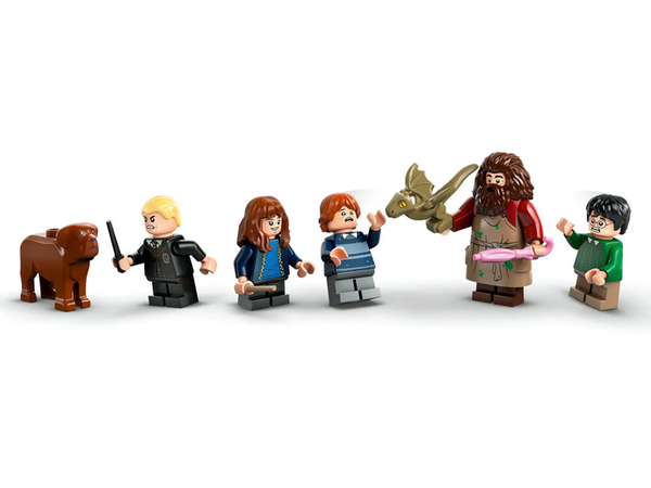 Deze bouwbare set van een bekende Harry Potter locatie bevat 5 LEGO minifiguren – Harry Potter, Hermelien Griffel, Ron Wemel, Draco Malfidus en Rubeus Hagrid – plus speelgoedfiguren van Norbert en Muil.