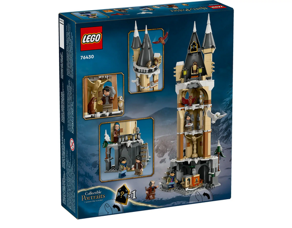 De set bevat een authentiek gedetailleerd LEGO model van de toren waar de uilen van Zweinstein zijn gehuisvest, met vensterbanken waar uilen op kunnen zitten, een uilenstandbeeld, 1 van de 14 Zweinstein verzamelportretten en accessoires.