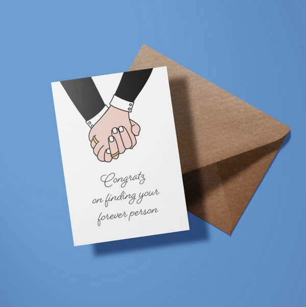 Eindelijk, de zoektocht is voorbij! Congratz on finding your forever person – nu kunnen jullie samen oud en grijs worden (en waarschijnlijk kibbelen over de afstandsbediening).